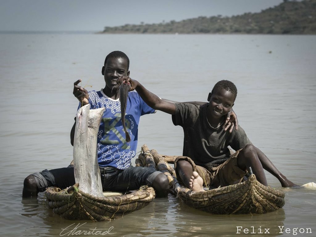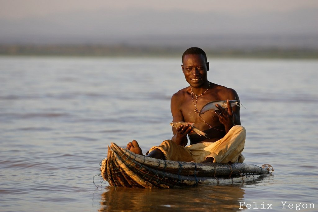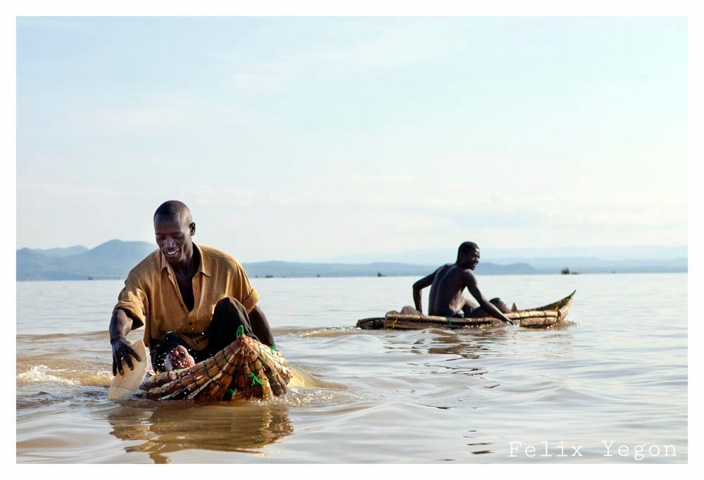 ambach wood and use two wooden paddles to move the canoe on Lake Baringo, where they fished.